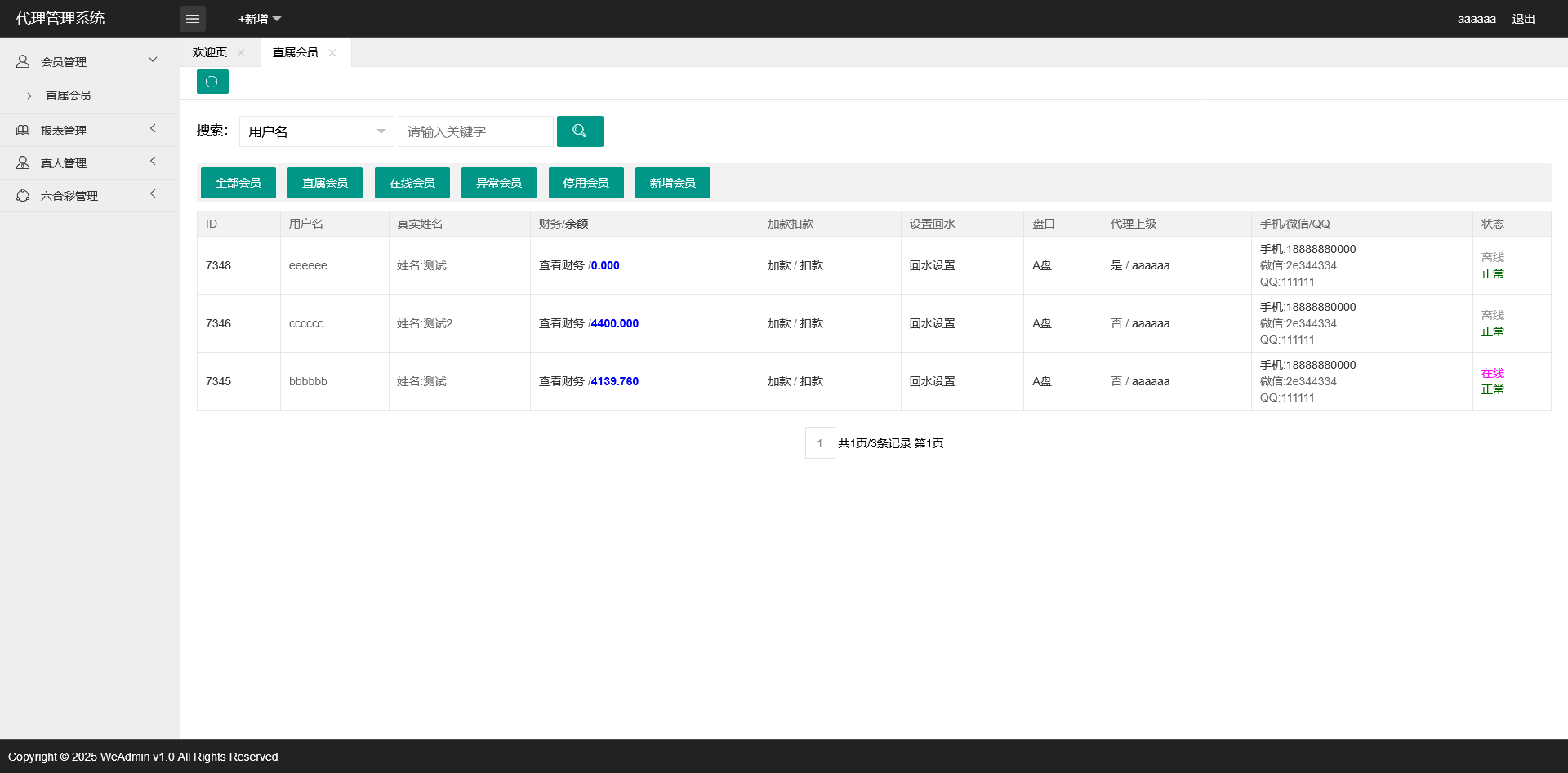 账号:aaaaaa 密码:123456